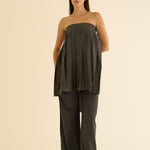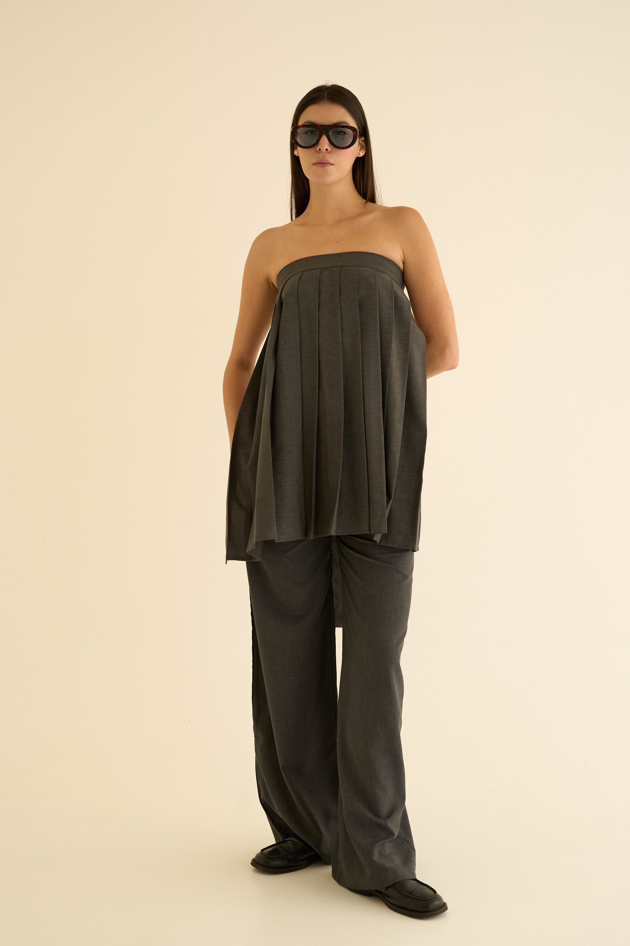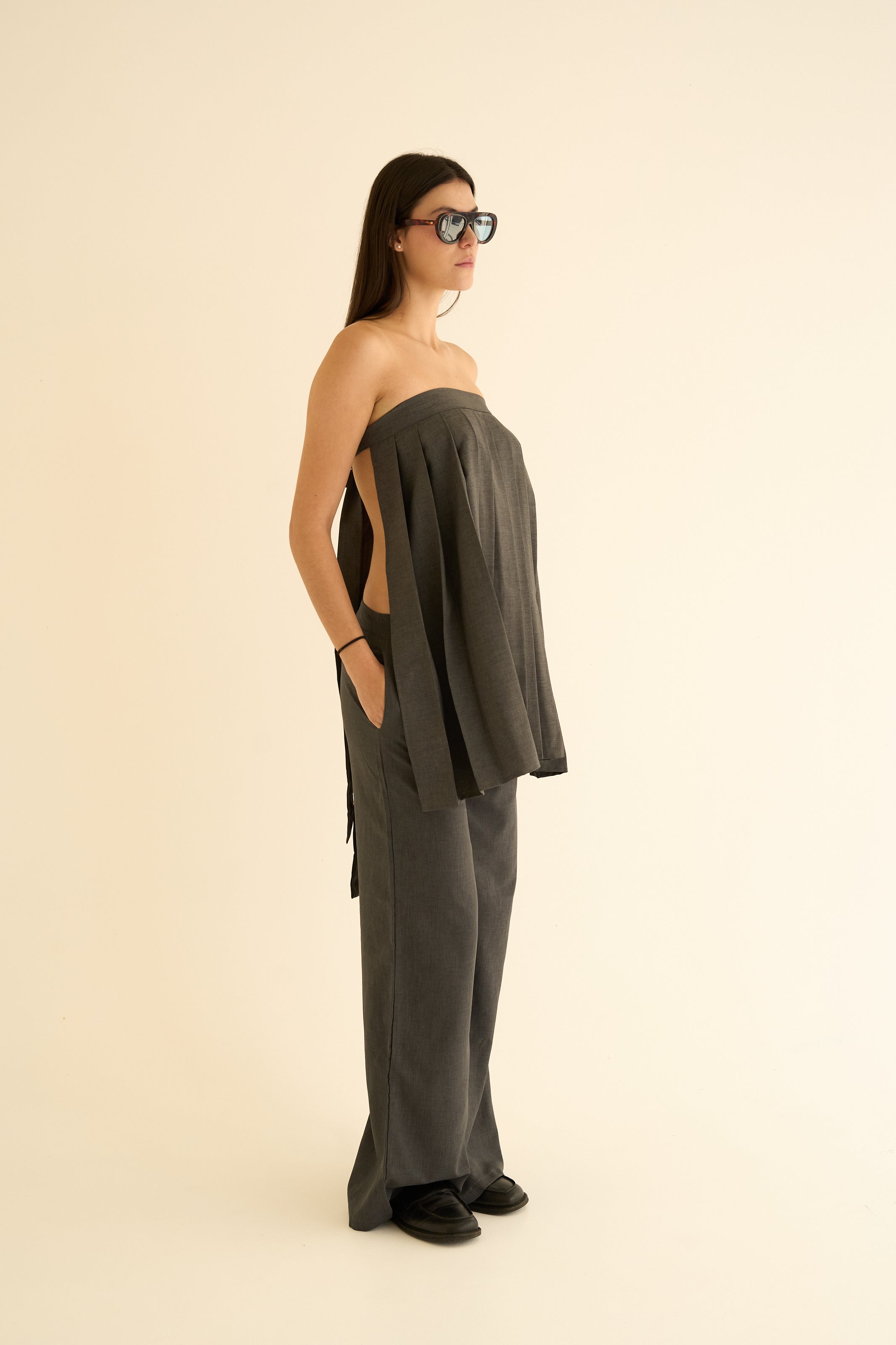 Set de dos piezas en tono gris, diseñado para jugar con la versatilidad y las siluetas.