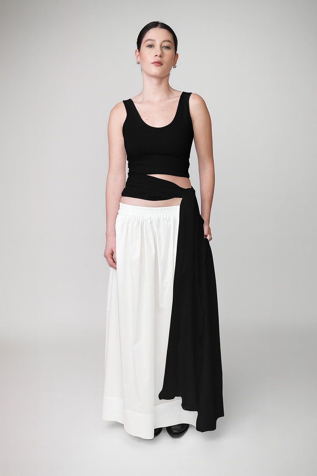 Top Rib G33 es una reinterpretación sofisticada de la clásica camisilla, llevándola a un nuevo nivel de distinción. Su diseño presenta un corte vertical que fluye elegantemente desde los tirantes, destacando con sutileza la sensualidad de la espalda y el abdomen.
